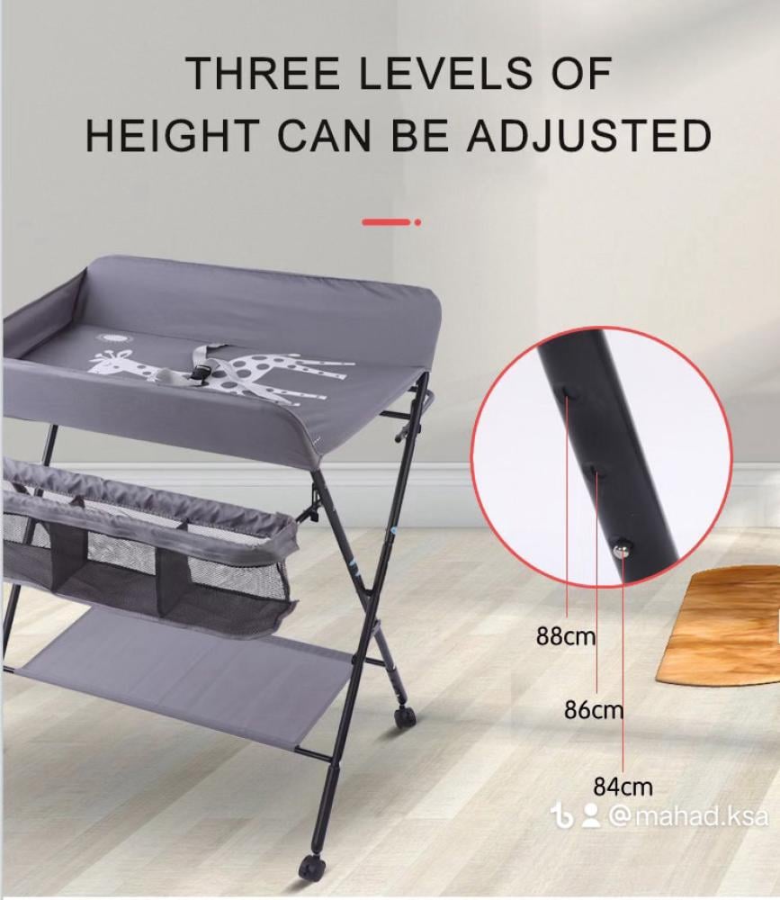 مساحة تخزين واسعة: تتميز هذه الطاولة برفوف تخزين كبيرة، وتحافظ على أساسيات الطفل منظمة وفي متناول اليد. مثالية لتخزين الحفاضات والمناديل المبللة والملابس وأكثر من ذلك، مما يضمن حصولك على كل ما تحتاجه أثناء وقت التغيير.