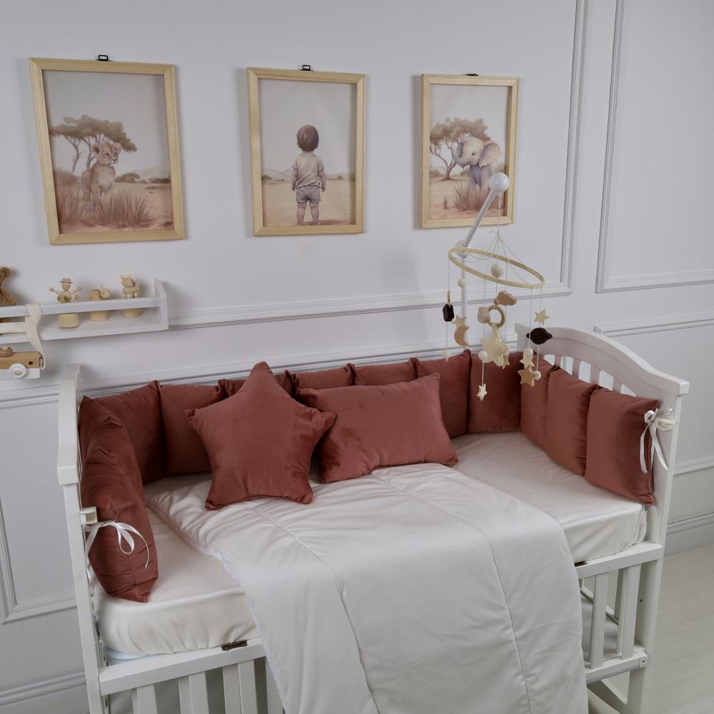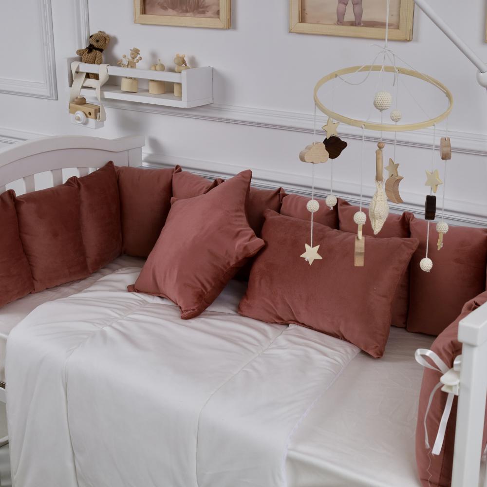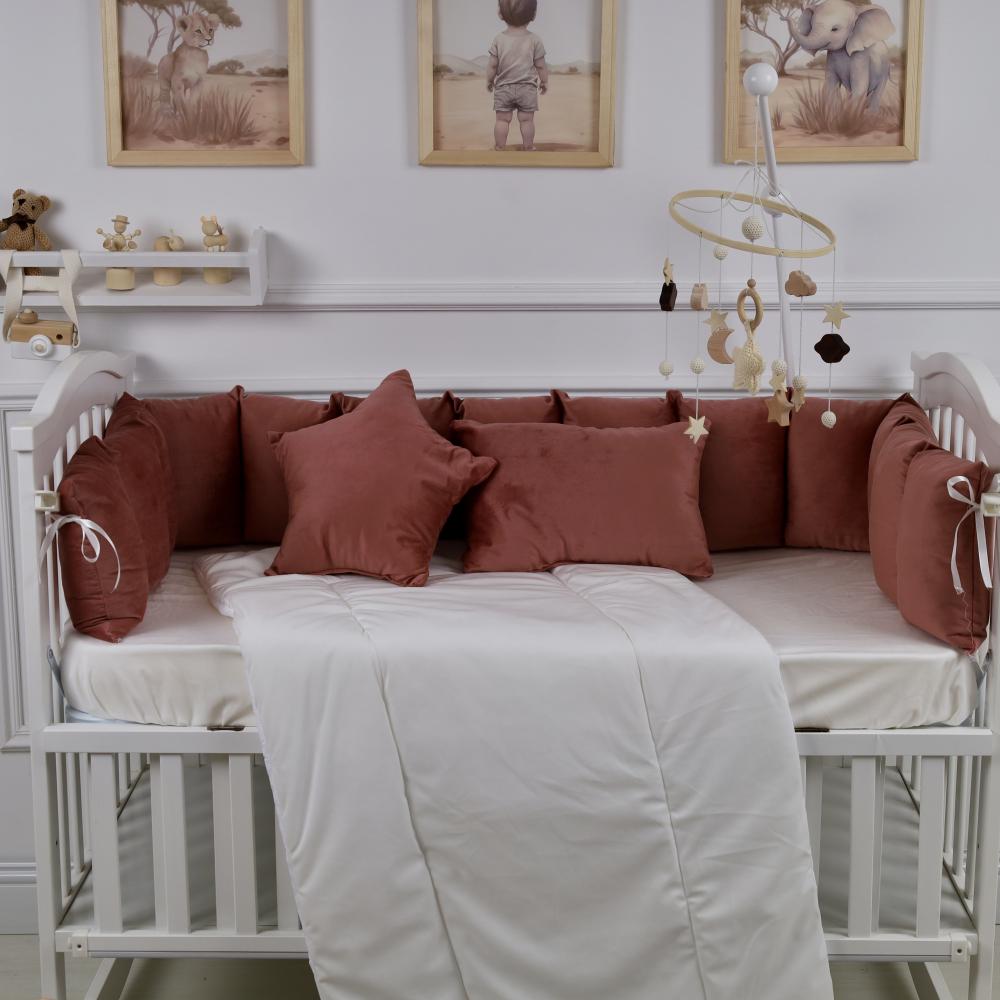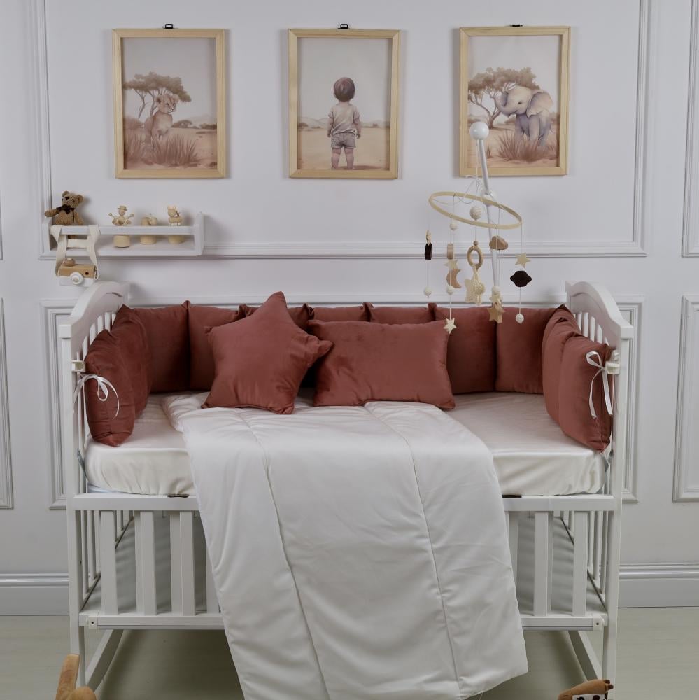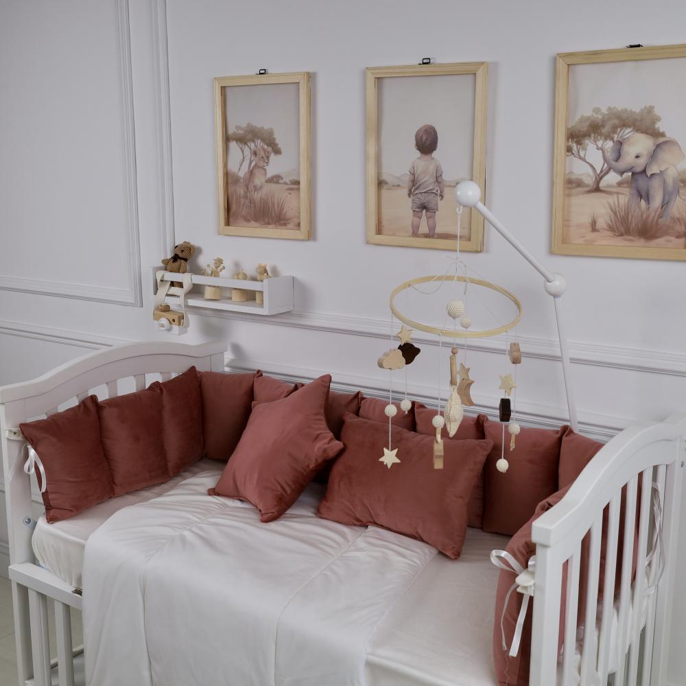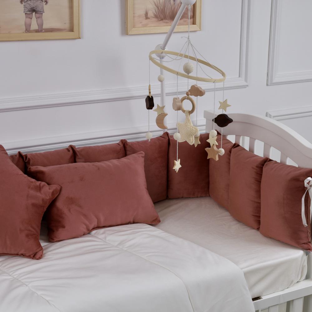• حاجز سرير على شكل مخدات: يحمي طفلك من السقوط أثناء النوم ويوفر الأمان.
