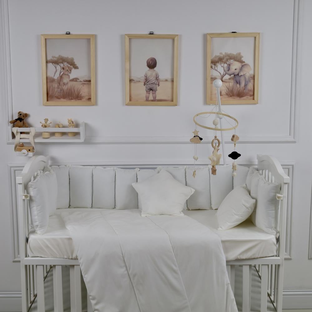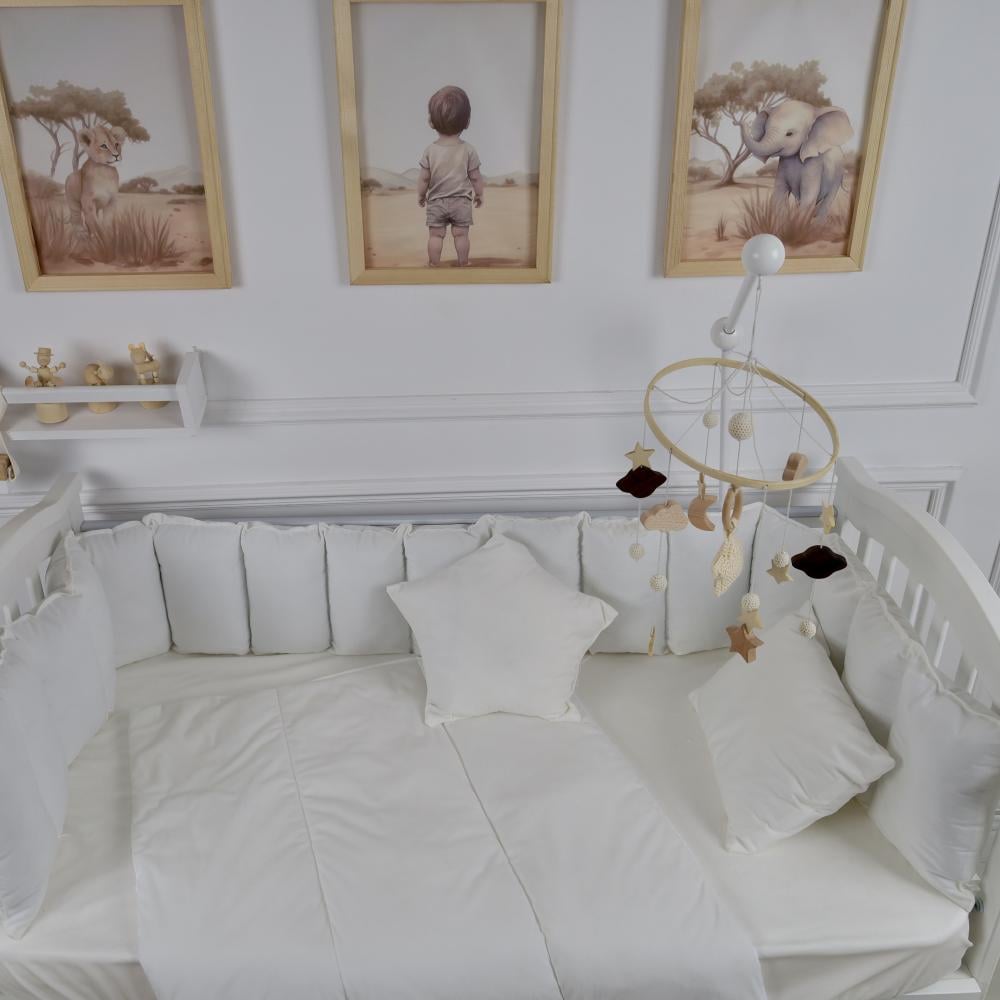• حاجز سرير على شكل مخدات: يحمي طفلك من السقوط أثناء النوم ويوفر الأمان.