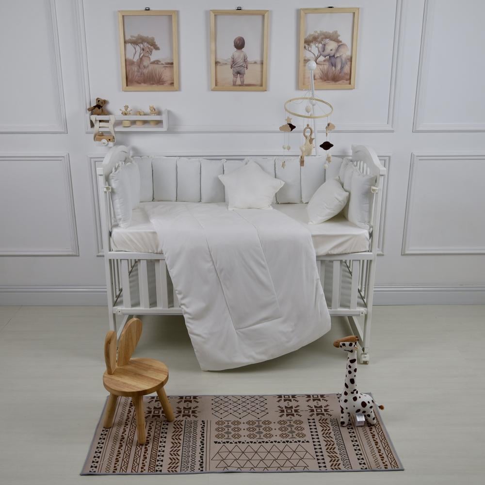 أضيفي لمسة من السحر والراحة إلى غرفة طفلك مع مفرش السرير بتصميم المخدات اللطيف، الذي يوفر أجواء من الراحة والأمان طوال الليل. هذا المنتج مثالي لكل أم تبحث عن توفير بيئة آمنة ومريحة لطفلها.
