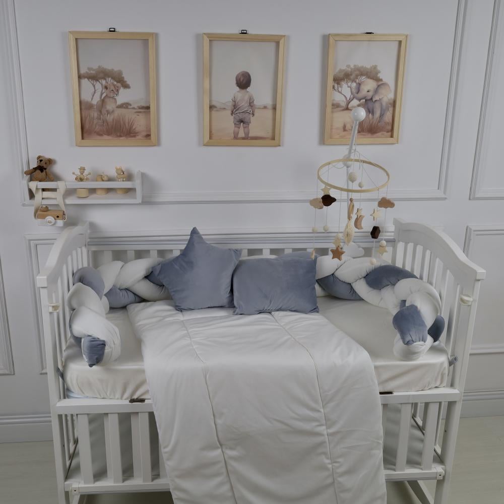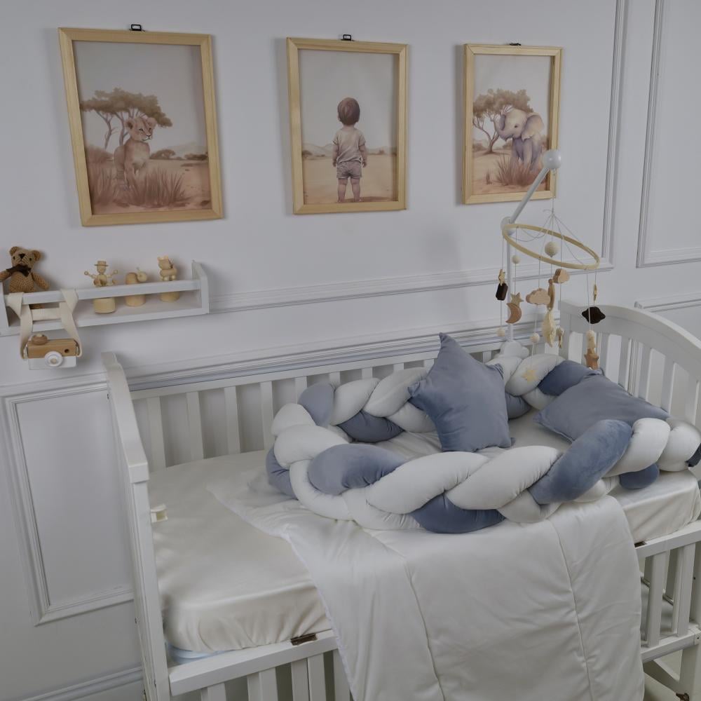ابتكري لأطفالكِ عالمًا من الأمان والراحة مع مفرش السرير بتصميم الظفيرة الذي يجعل كل ليلة أكثر هدوءًا وراحة. هذه المجموعة مثالية لكل أم تبحث عن الراحة والجمال في غرفة طفلها.