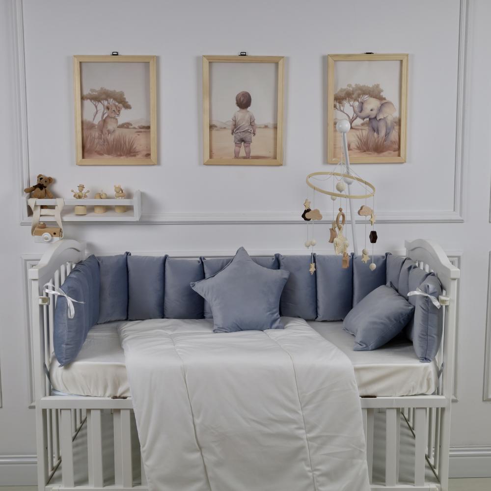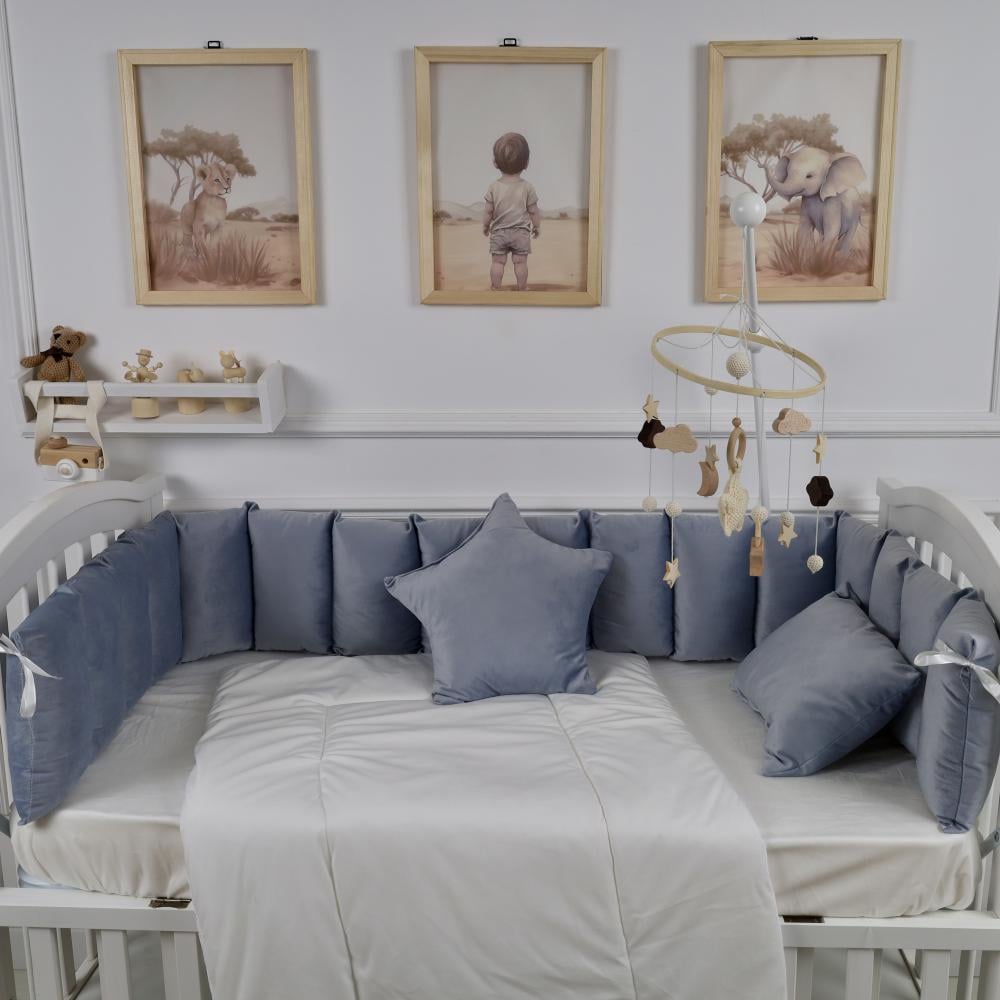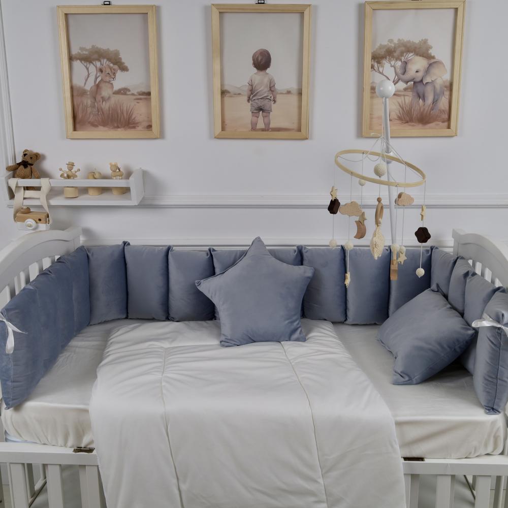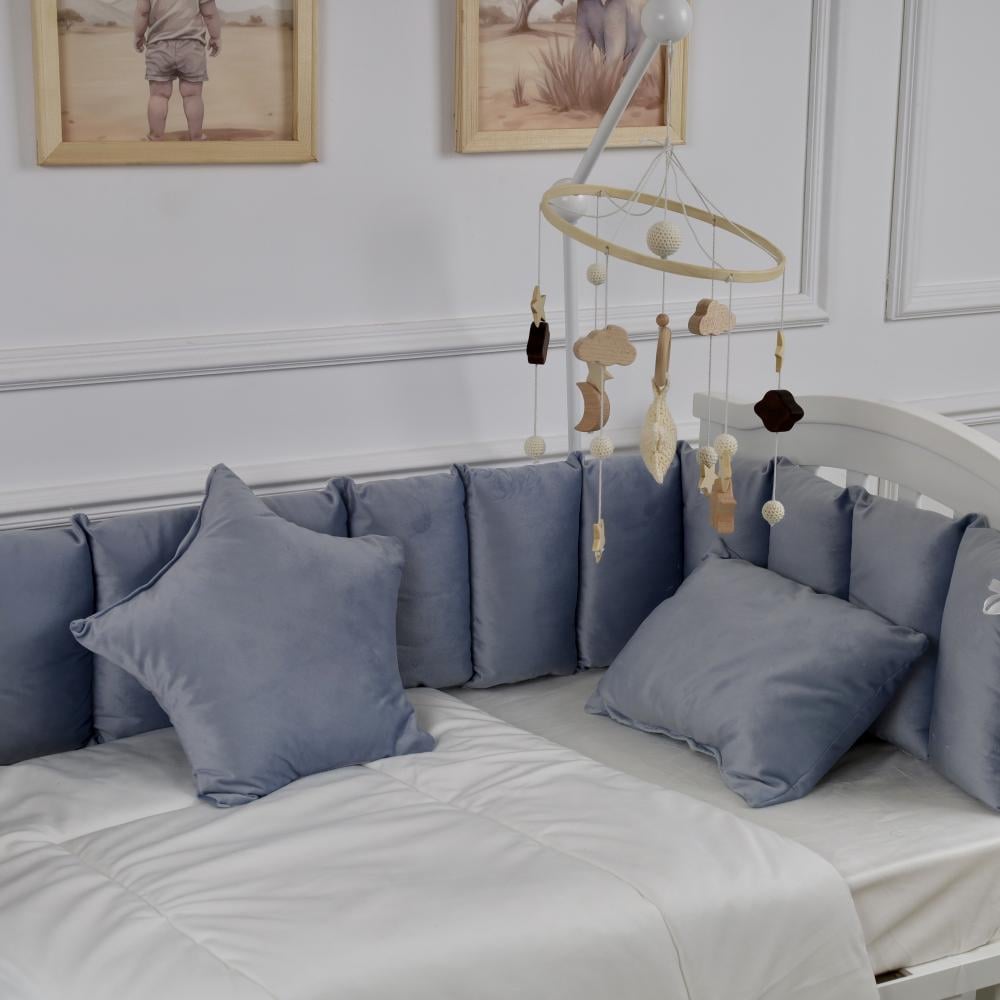 • حاجز سرير على شكل مخدات: يحمي طفلك من السقوط أثناء النوم ويوفر الأمان.
