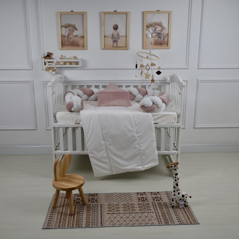 ابتكري لأطفالكِ عالمًا من الأمان والراحة مع مفرش السرير بتصميم الظفيرة الذي يجعل كل ليلة أكثر هدوءًا وراحة. هذه المجموعة مثالية لكل أم تبحث عن الراحة والجمال في غرفة طفلها.