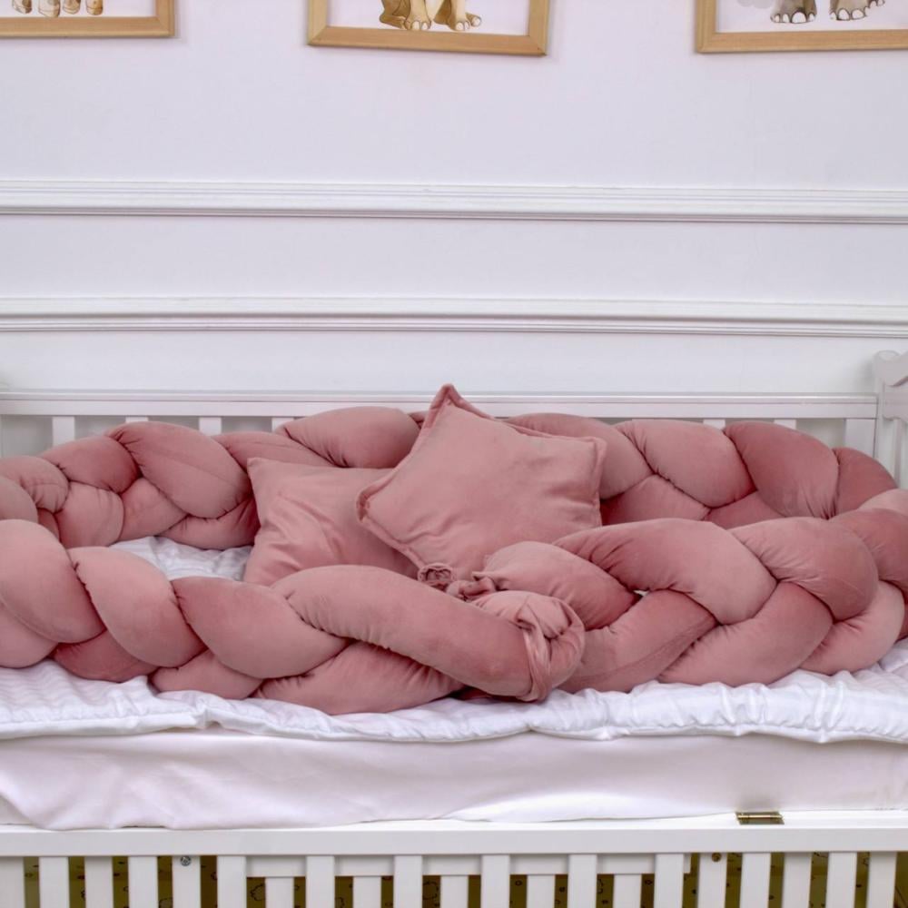 مفرش سرير أطفال ظفيرة 5 قطع وردي بتصميم حصري لحماية وراحة مثالية