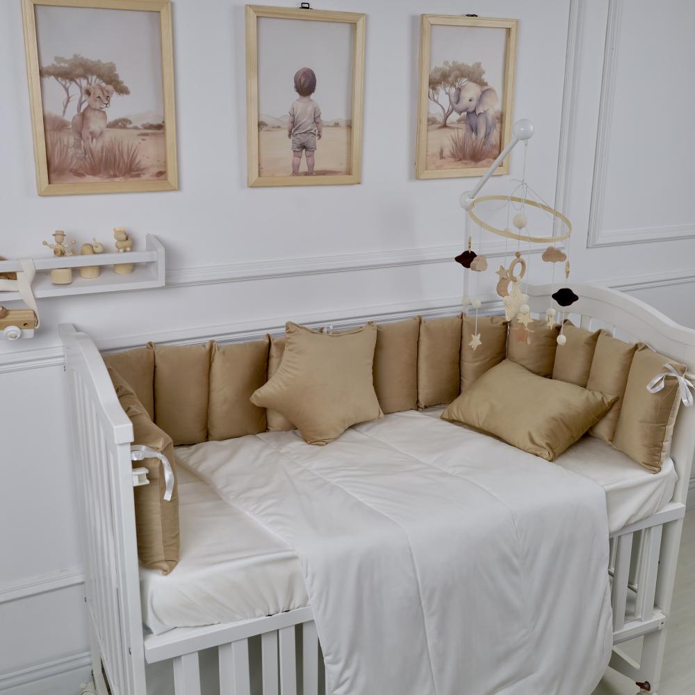 • حاجز سرير على شكل مخدات: يحمي طفلك من السقوط أثناء النوم ويوفر الأمان.